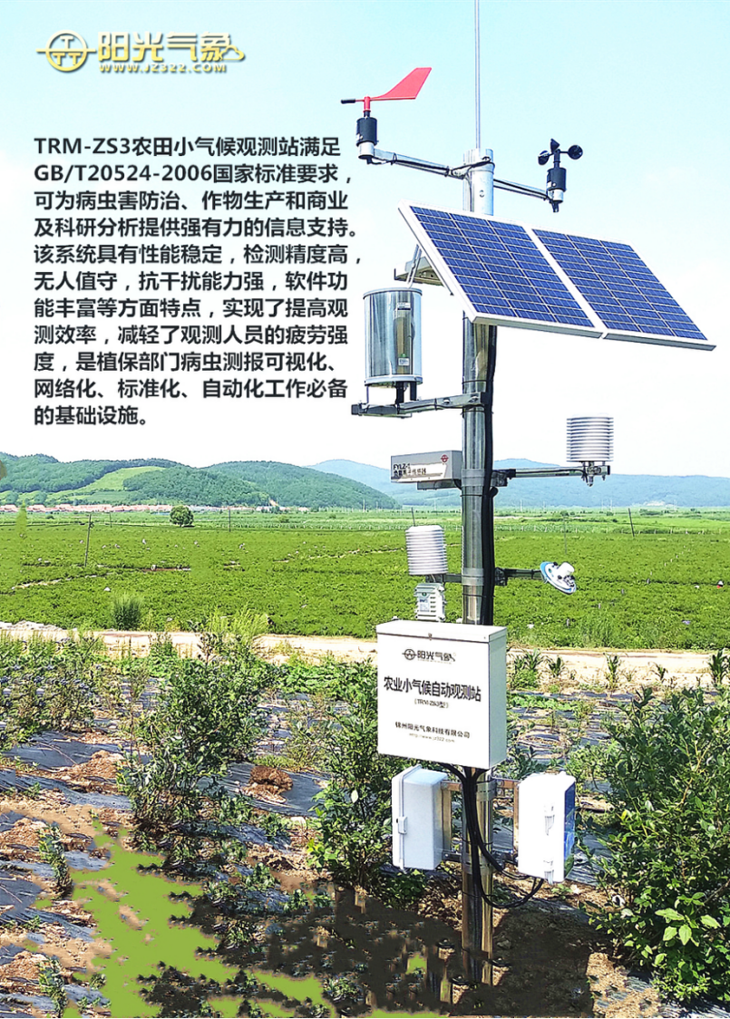 TRM-ZS3農(nóng)田小氣候觀測站滿足GB/T 20524-2006國家標(biāo)準(zhǔn)要求,可為病蟲害防治、作物生產(chǎn)和商業(yè)及科研分析提供強(qiáng)有力的信息支持。該系統(tǒng)具有性能穩(wěn)定,檢測精度高,無人職守,抗干擾能力強(qiáng),軟件功能豐富等方面特點。