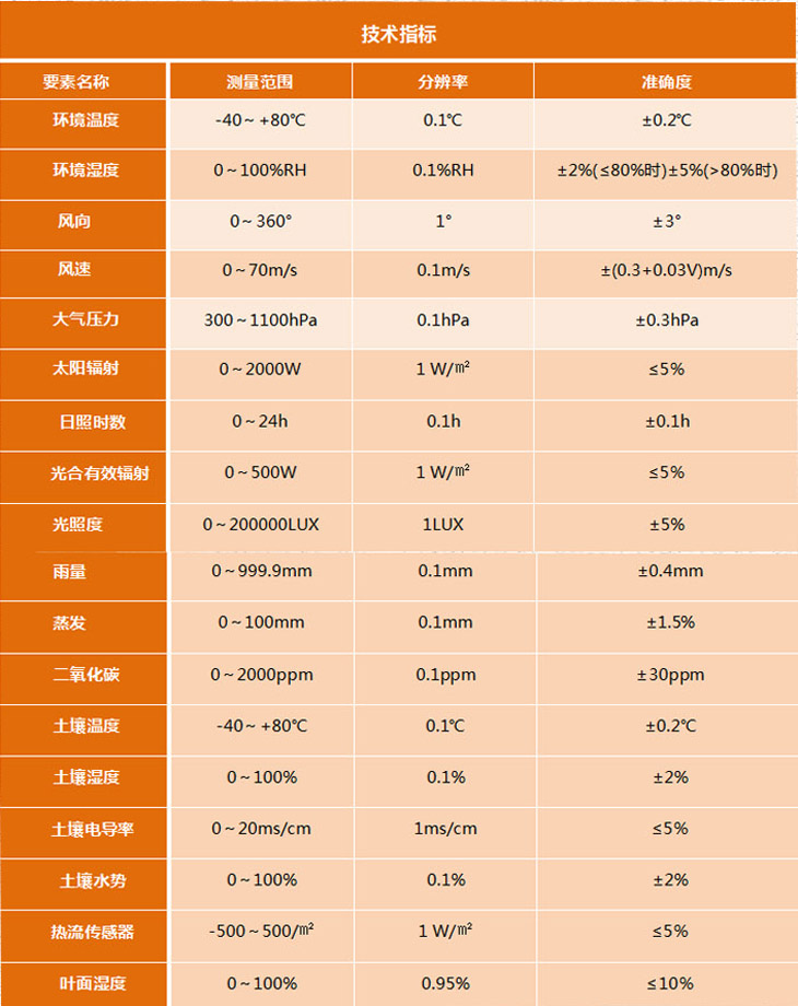 TRM-ZS3農(nóng)田小氣候觀測站滿足GB/T 20524-2006國家標(biāo)準(zhǔn)要求,可為病蟲害防治、作物生產(chǎn)和商業(yè)及科研分析提供強(qiáng)有力的信息支持。該系統(tǒng)具有性能穩(wěn)定,檢測精度高,無人職守,抗干擾能力強(qiáng),軟件功能豐富等方面特點(diǎn)。