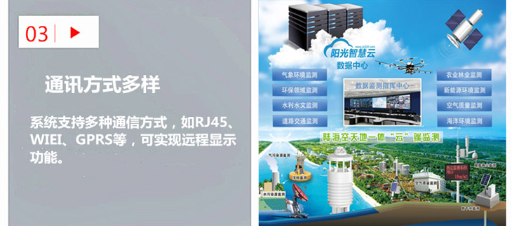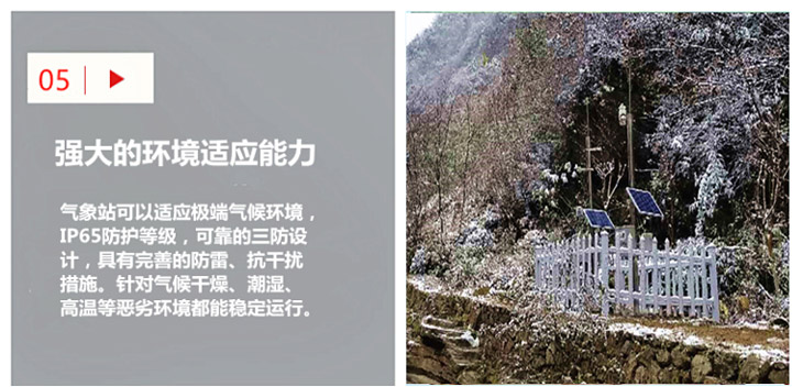 TRM—ZS5型旅游景區(qū)自動(dòng)氣象站是針對(duì)各大景區(qū)及城市用戶的一種實(shí)用型自動(dòng)氣象站,它除可測(cè)量常規(guī)氣象要素如風(fēng)向、風(fēng)速、溫度、濕度、氣壓、雨量外,還可對(duì)紫外線、特零地溫(即零厘米土面、水泥面、瀝青面、草坪)的觀測(cè),為景區(qū)及城市環(huán)境保護(hù)提供科學(xué)依據(jù)。