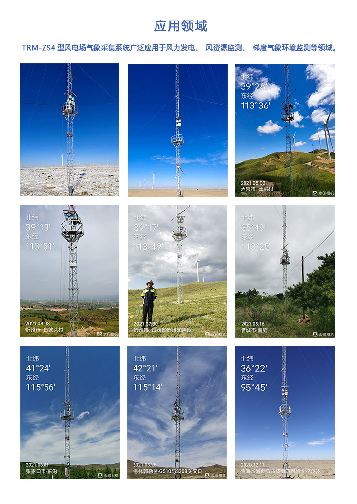 TRM-ZS4型風(fēng)電場氣象采集系統(tǒng)是風(fēng)電功率預(yù)測系統(tǒng)重要組成部分,主要負責(zé)采集氣象預(yù)報數(shù)據(jù),包括測風(fēng)塔梯度風(fēng)速、風(fēng)向、溫度、濕度以及氣壓等實時數(shù)據(jù)、并對數(shù)據(jù)進行分析處理和統(tǒng)計,再實時輸出給風(fēng)功率預(yù)測系統(tǒng),為風(fēng)電場的風(fēng)電功率預(yù)測工作提供可靠數(shù)據(jù)。TRM-ZS4型風(fēng)電場氣象采集系統(tǒng)由氣象傳感器、微電腦氣象數(shù)據(jù)采集儀、太陽能電源供電系統(tǒng)、全天候防護箱和氣象觀測支架、通訊模塊等部分構(gòu)成。