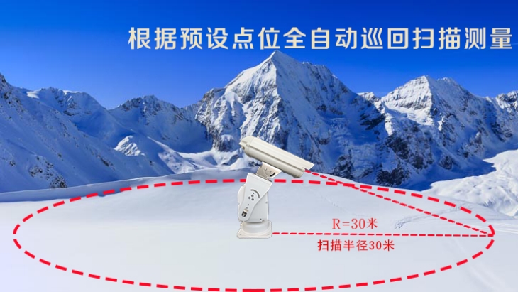 1、掃描式雪深測量儀具有測量點可靈活設(shè)定的功能,最多可測量180個點位,儀器按照設(shè)定點位自動輪詢測量,不需人工參與,同時雪深報警值也可根據(jù)用戶需求進行任意設(shè)置;